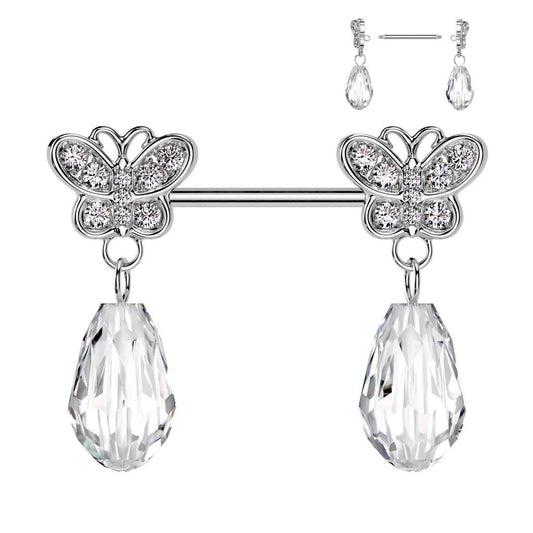 Material Chirurgenstahl 316L mit Gold-PVD-Beschichtung Design Schmetterling-Motiv mit Zirkonia-Kristallen und Smaragd-Anhänger Stabstärke / Länge 1,6 mm / 14 mm Verschluss Schraubverschluss Besonderheiten Hypoallergen, langlebig und hautfreundlich Das Brustwarzenpiercing mit Schmetterling-Motiv und Smaragd-Anhänger ist ein wahrer Hingucker. Die filigrane Schmetterlingsverzierung ist mit Zirkonia-Kristallen besetzt, während ein eleganter Smaragd-Anhänger das Design...