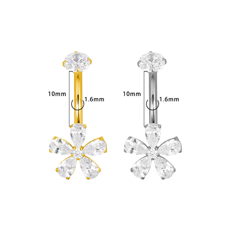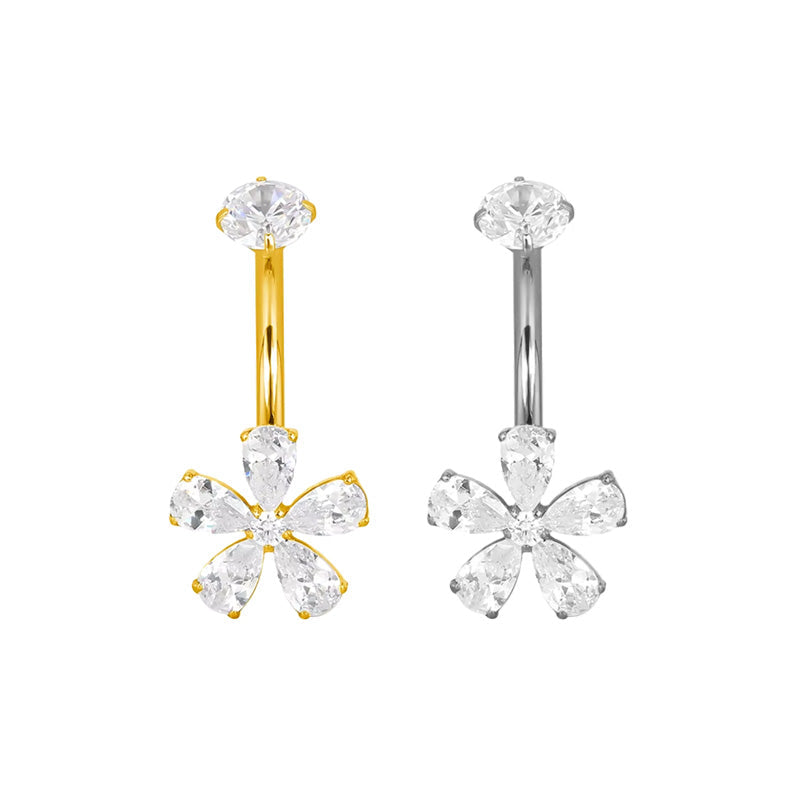 Design & Tragegefühl: Kompakte Blüte mit fünf tropfenförmigen Kristallen; sitzt angenehm und funkelt dezent bei Bewegung.