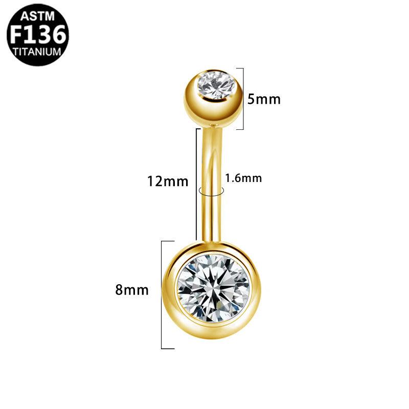 Schlicht. Klar. Edel. Dieses Bauchnabelpiercing aus TITAN (ASTM F136) vereint medizinische Qualität mit minimalistischer Eleganz. Die beiden rund eingefassten 5A Zirkonia sitzen sicher in einer modernen Zargenfassung – dezent glänzend und optimal geschützt. Ob in Gold (PVD) oder klassischem Silber – dieses Design passt zu jedem Look und lässt sich angenehm tragen.