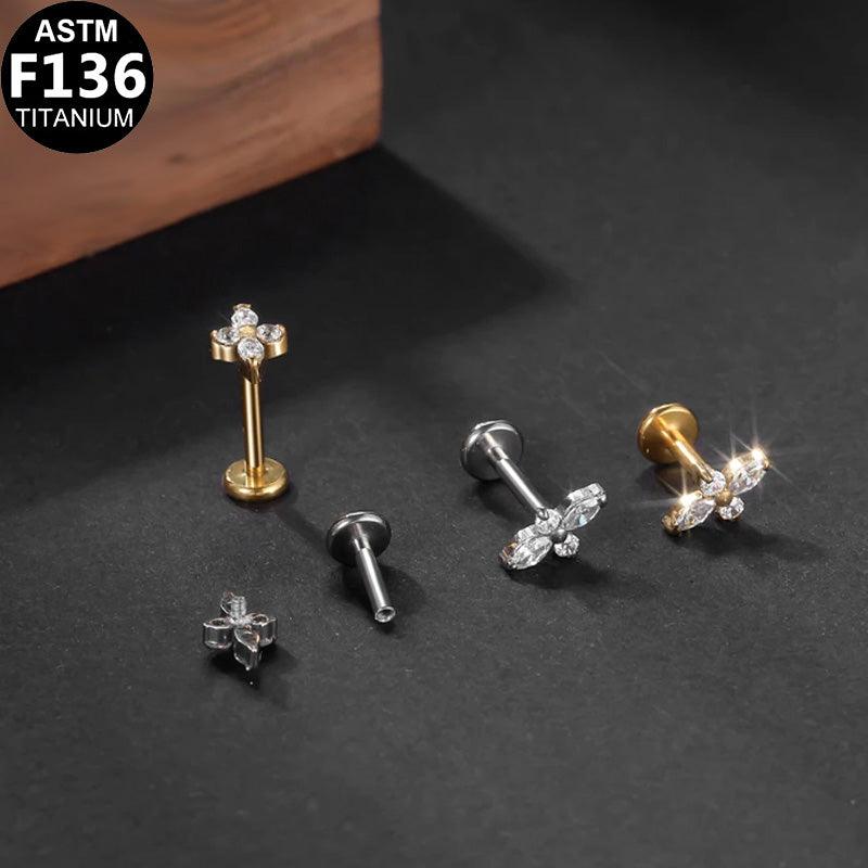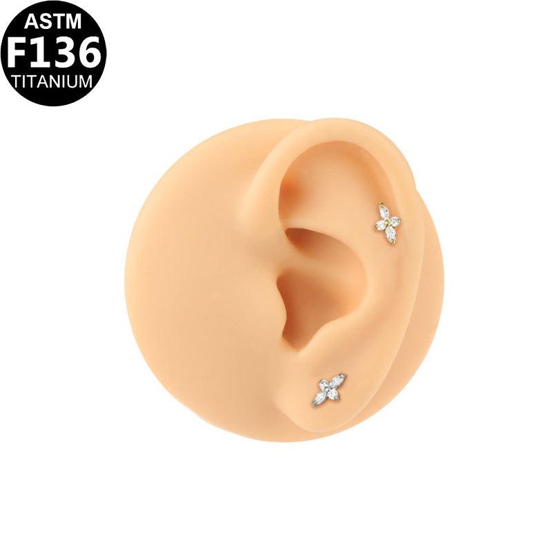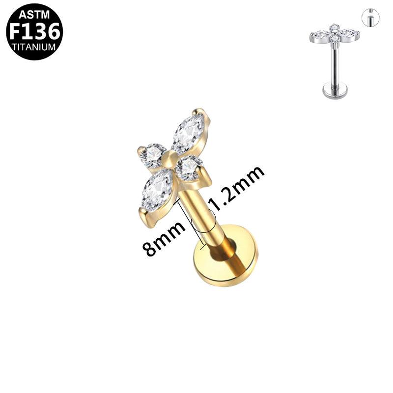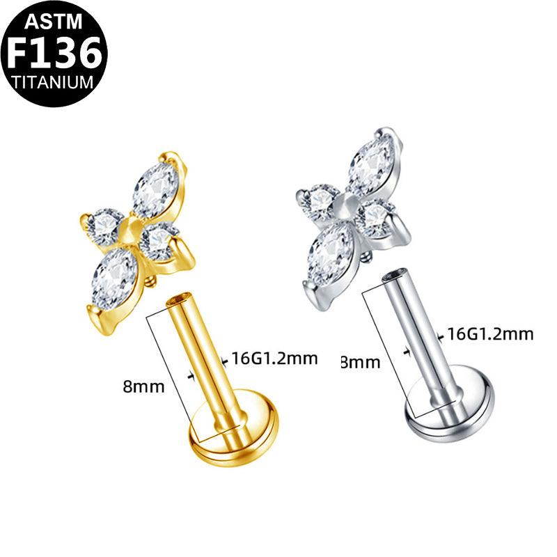 Modern, präzise, funkelnd: Dieses Labret aus TITAN (ASTM F136) kombiniert zwei Marquiseschliff-Zirkonia mit zwei kleineren runden Zirkonia zu einem klaren, symmetrischen Kreuz-Design. Ideal für dein Helix-, Tragus-, Flat- oder Conch-Piercing – ein dezenter Blickfang mit medizinischer Qualität.