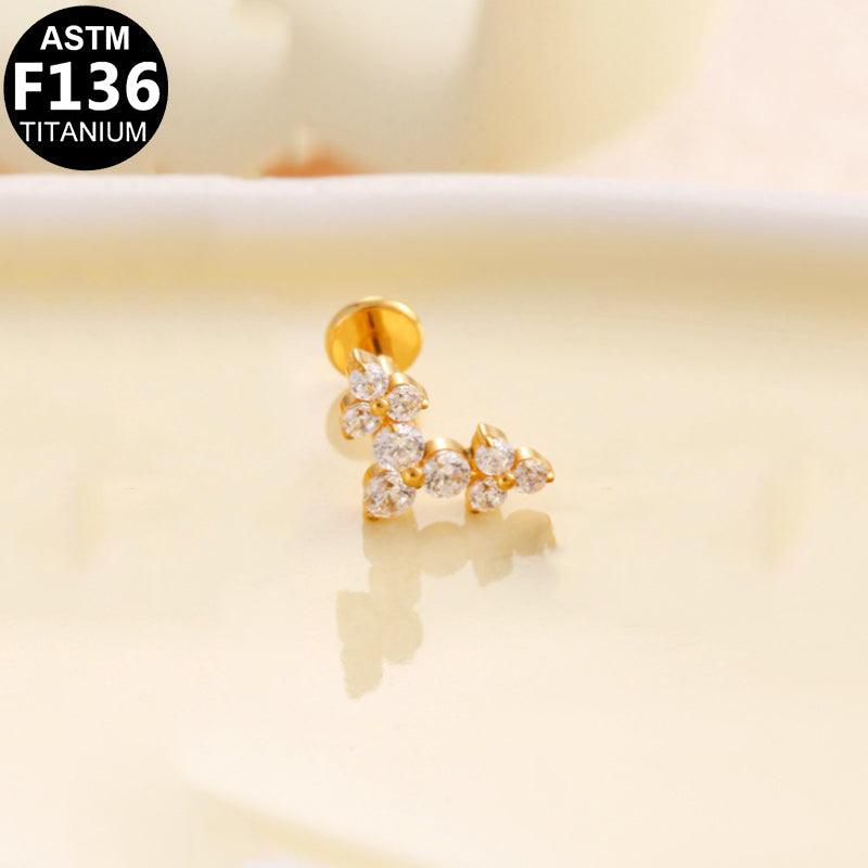 Glanz, der sich zieht – elegant und geometrisch. Dieses Labret aus TITAN (ASTM F136) kombiniert drei Kristallgruppen mit je drei hochwertigen 5A Zirkonia, angeordnet in einer Kristallreihe. Ideal für dein Helix-, Tragus-, Conch- oder Flat-Piercing – visuell auffällig, aber nicht aufdringlich.
