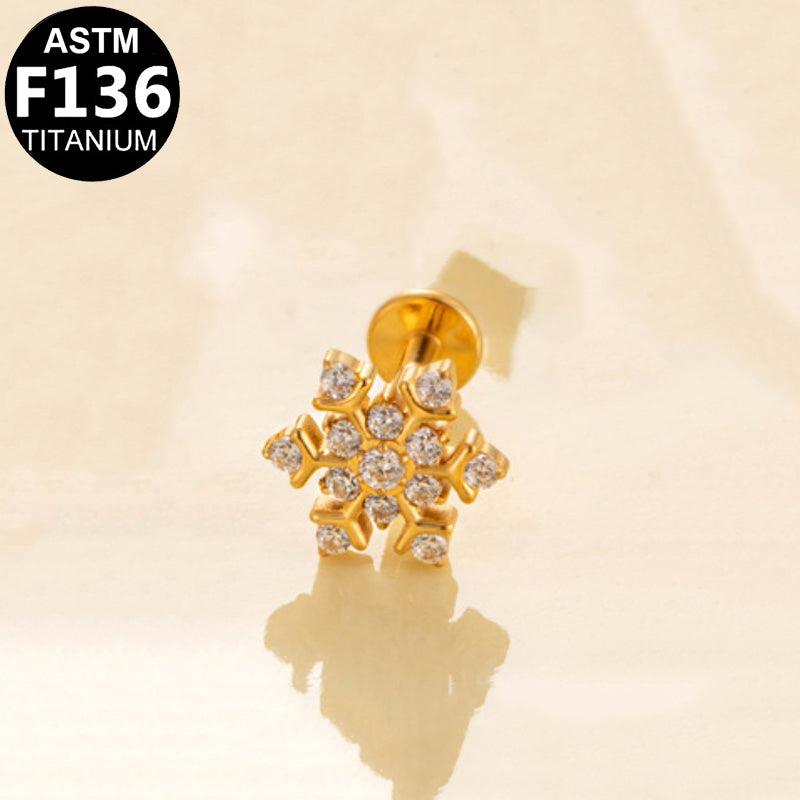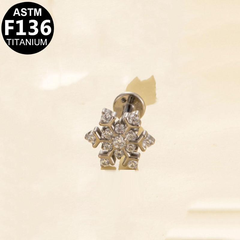 So fein wie Schnee – aber beständig wie Titan. Dieses Labret verbindet winterliche Leichtigkeit mit technischer Präzision. Die detailreiche Schneeflocke aus poliertem TITAN (ASTM F136) ist mit 5A Zirkonia besetzt und strahlt mit dir um die Wette. Ob in Gold oder Silber – ein besonderes Highlight für dein Helix-, Tragus- oder Conch-Piercing.